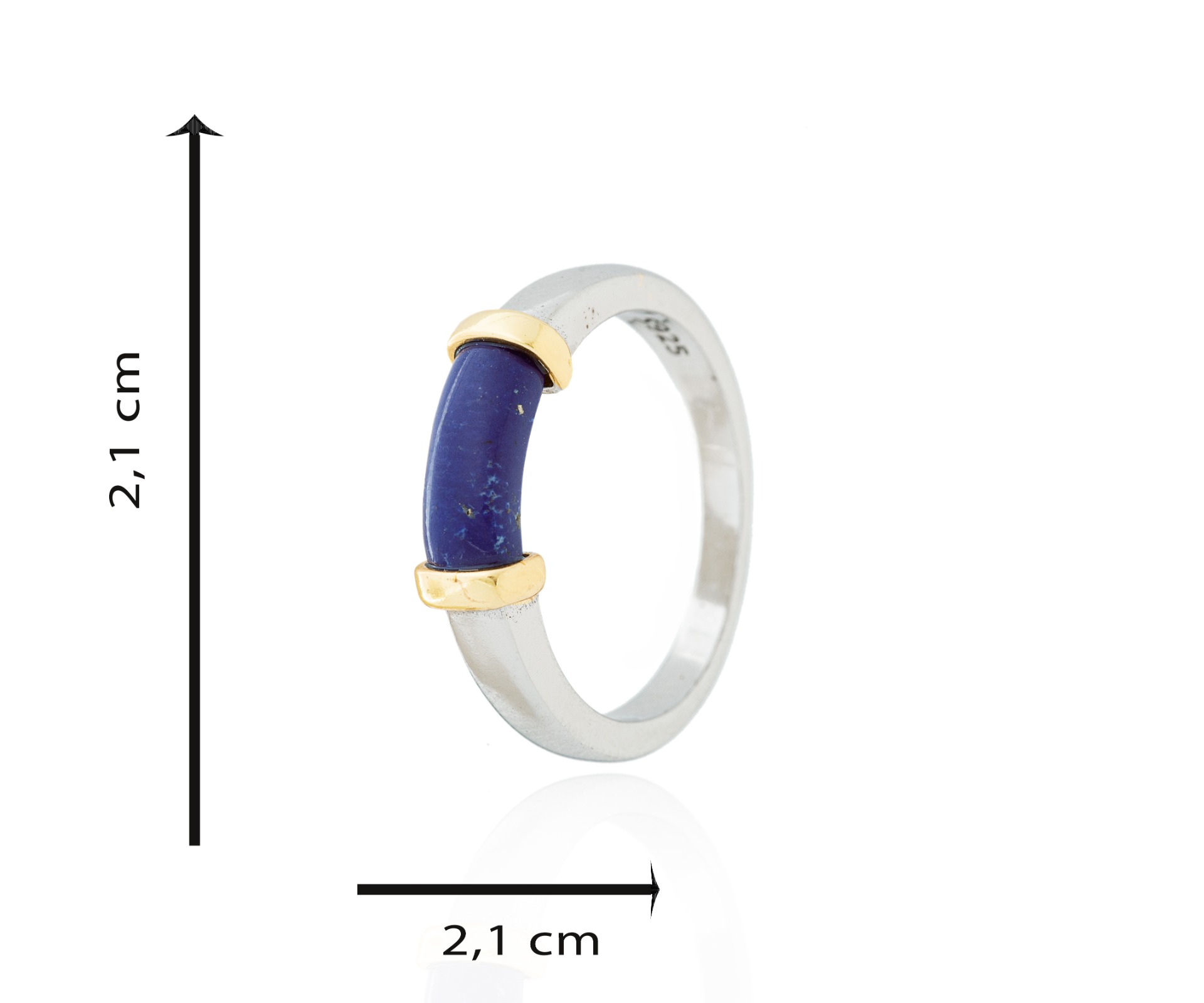 En cada extremo del lapislázuli, encontrarás dos piezas de plata de ley con un elegante baño de oro. Estas piezas agregan un toque de brillo y sofisticación al anillo, creando un equilibrio perfecto entre lo clásico y lo moderno.