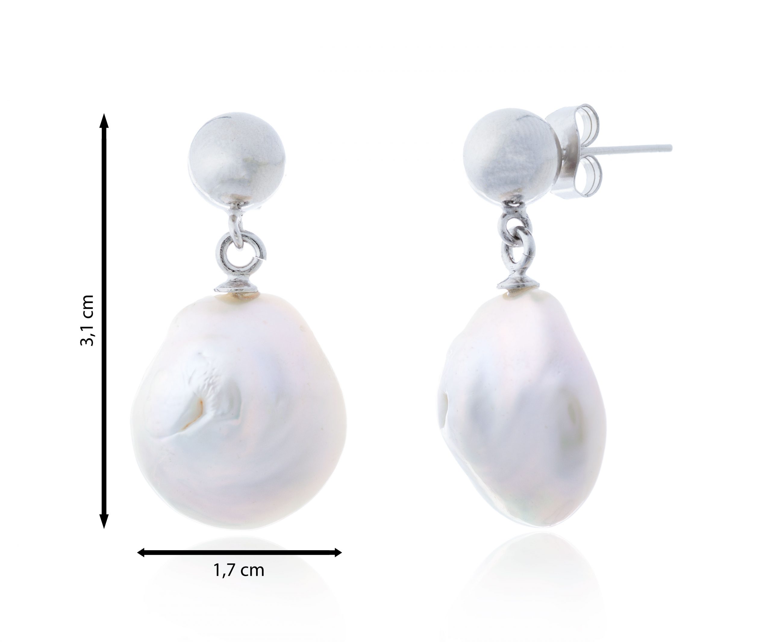 Perla barroca cultivada suspendida de un botón plateado mate. Un diseño orgánico y delicado con brillo suave.