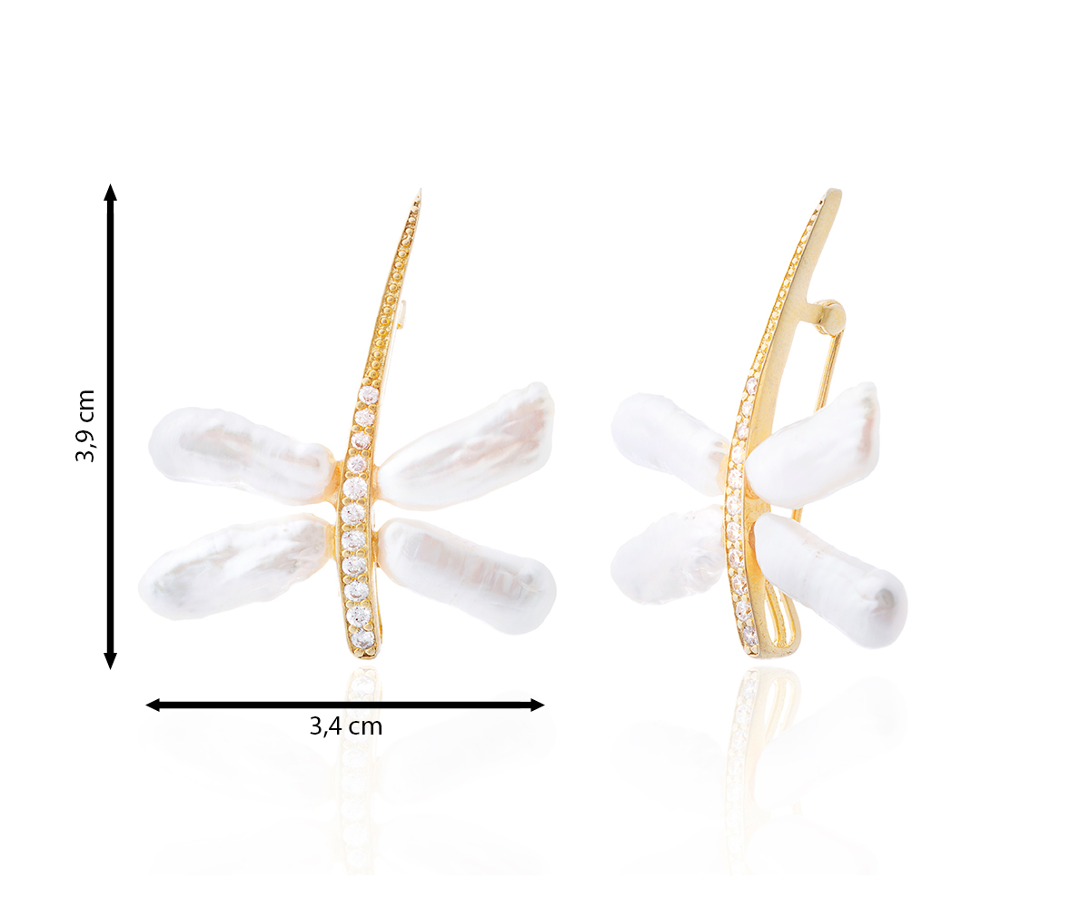 Este broche en plata de ley con baño de oro, con su encantadora forma de libélula, perlas barrocas y brillantes incrustaciones de circonita blanca, es una pieza única que agregará un toque de elegancia y distinción72.6. Lúcelo con orgullo y deja que su belleza y encanto resalten tu estilo.