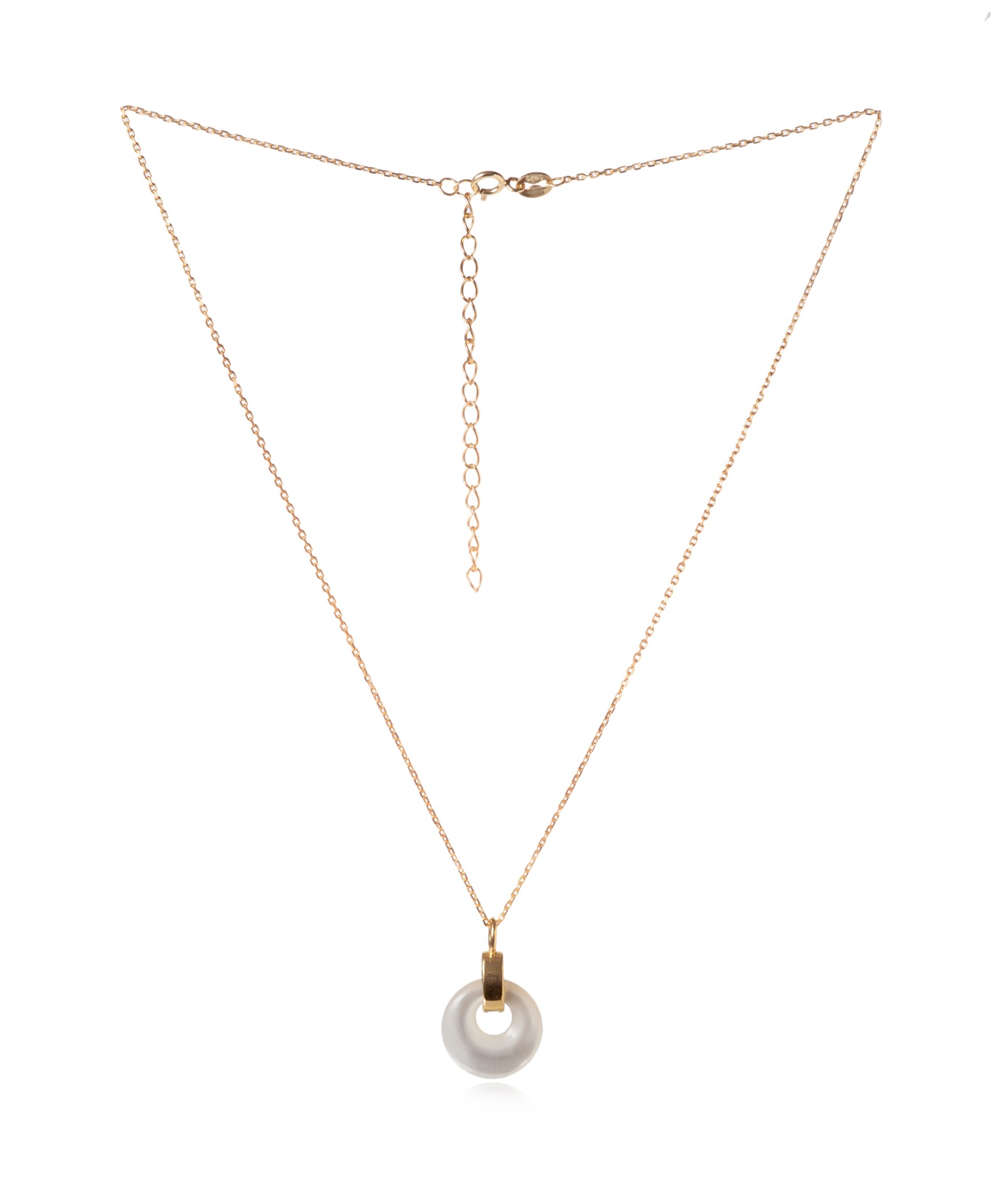 Imagina lucir esta cadena única, con su disco de nácar que refleja la luz de una manera mágica y suave. El nácar, conocido por su brillo iridiscente y su apariencia elegante, se combina perfectamente con el baño de oro en plata de ley, creando un contraste cautivador. Este diseño excepcional captura la atención y refleja tu estilo sofisticado.