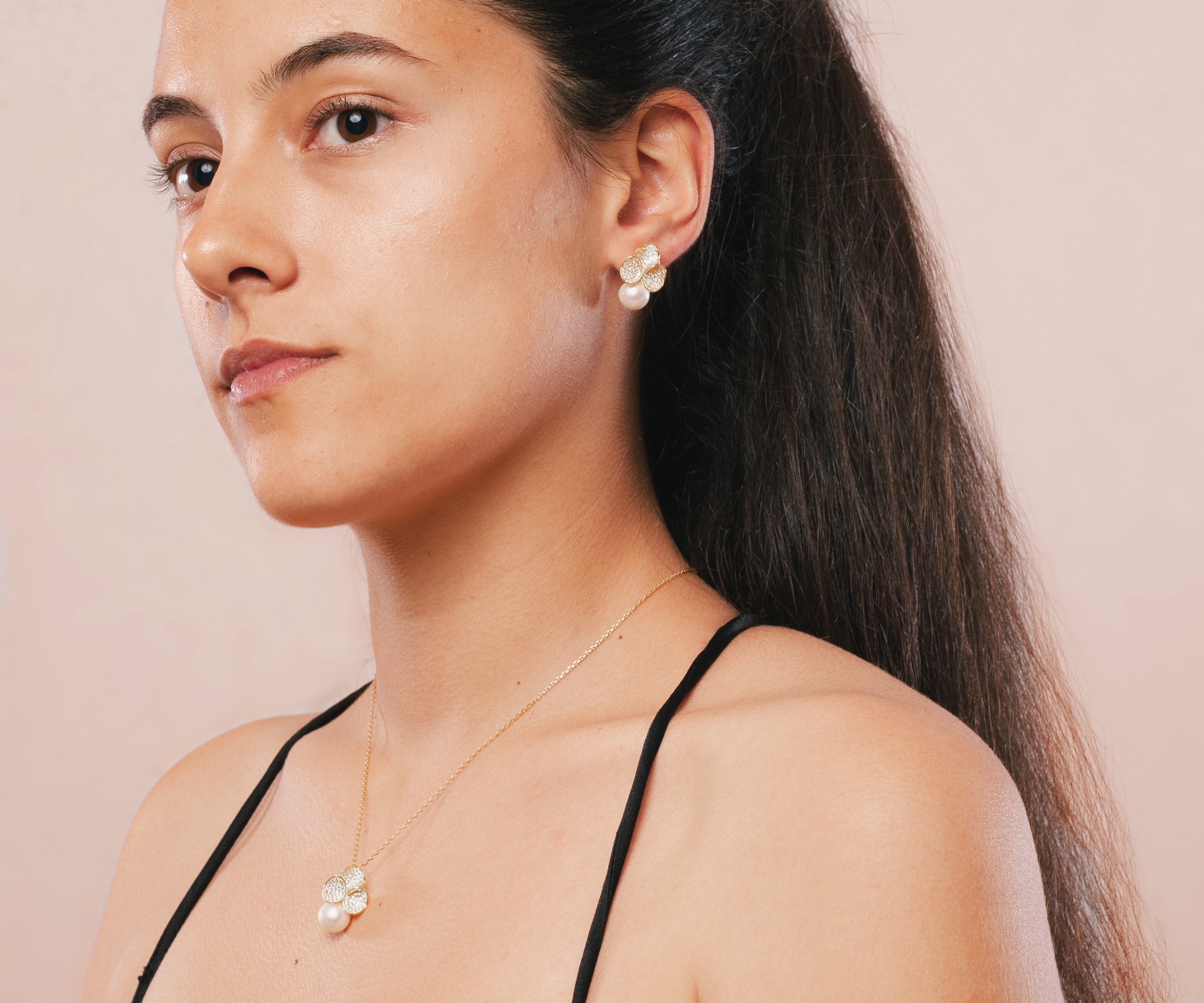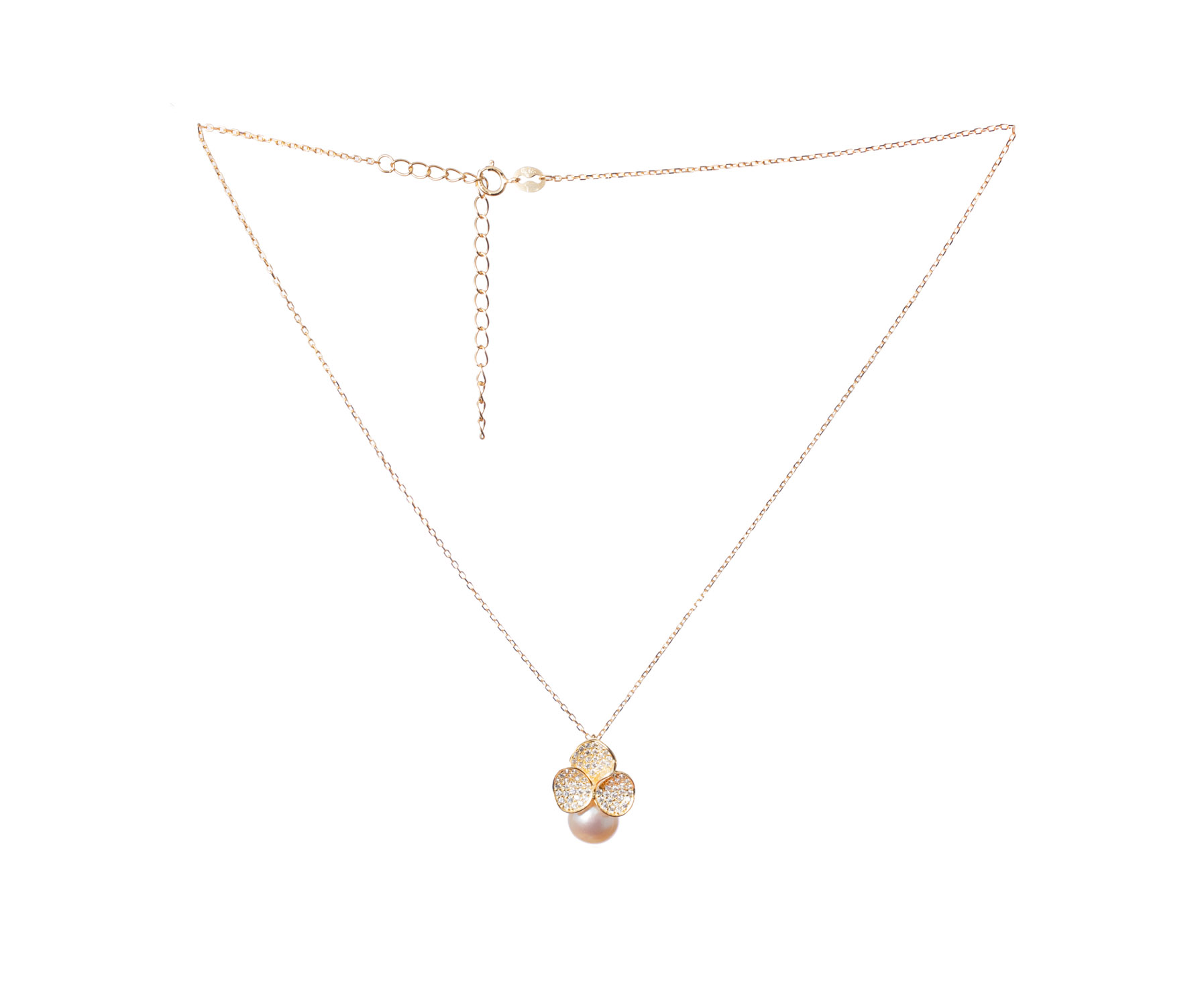 En el extremo de la cadena, encontrarás un colgante único que seguramente capturará miradas. El colgante presenta una perla delicada y una fornitura que simula un trébol dorado, resaltando su encanto y suerte. Además, el trébol está bellamente decorado con incrustaciones de circonitas blancas, que añaden un brillo deslumbrante.