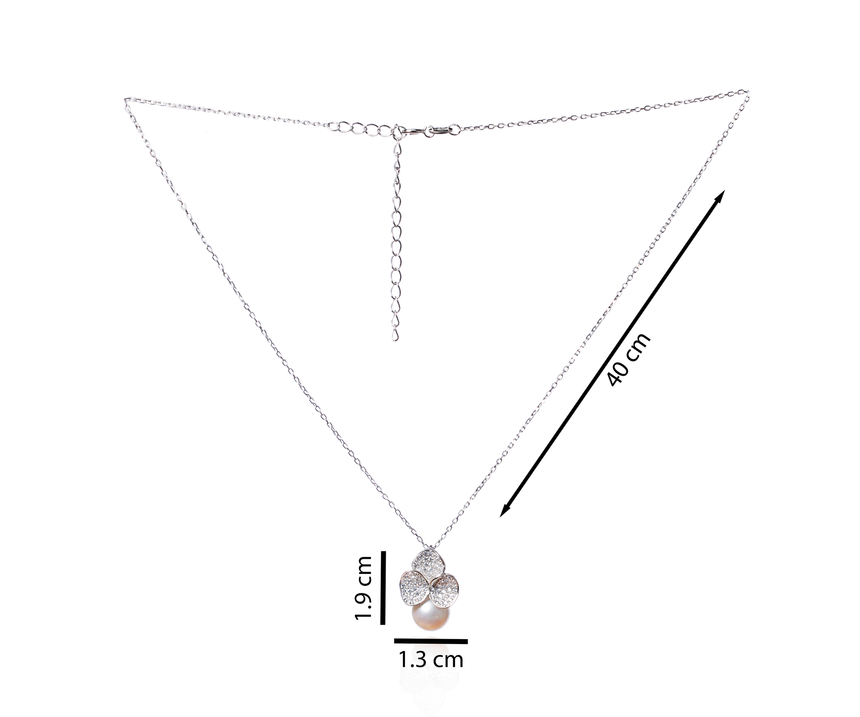 Cadena de plata con perla y trebol