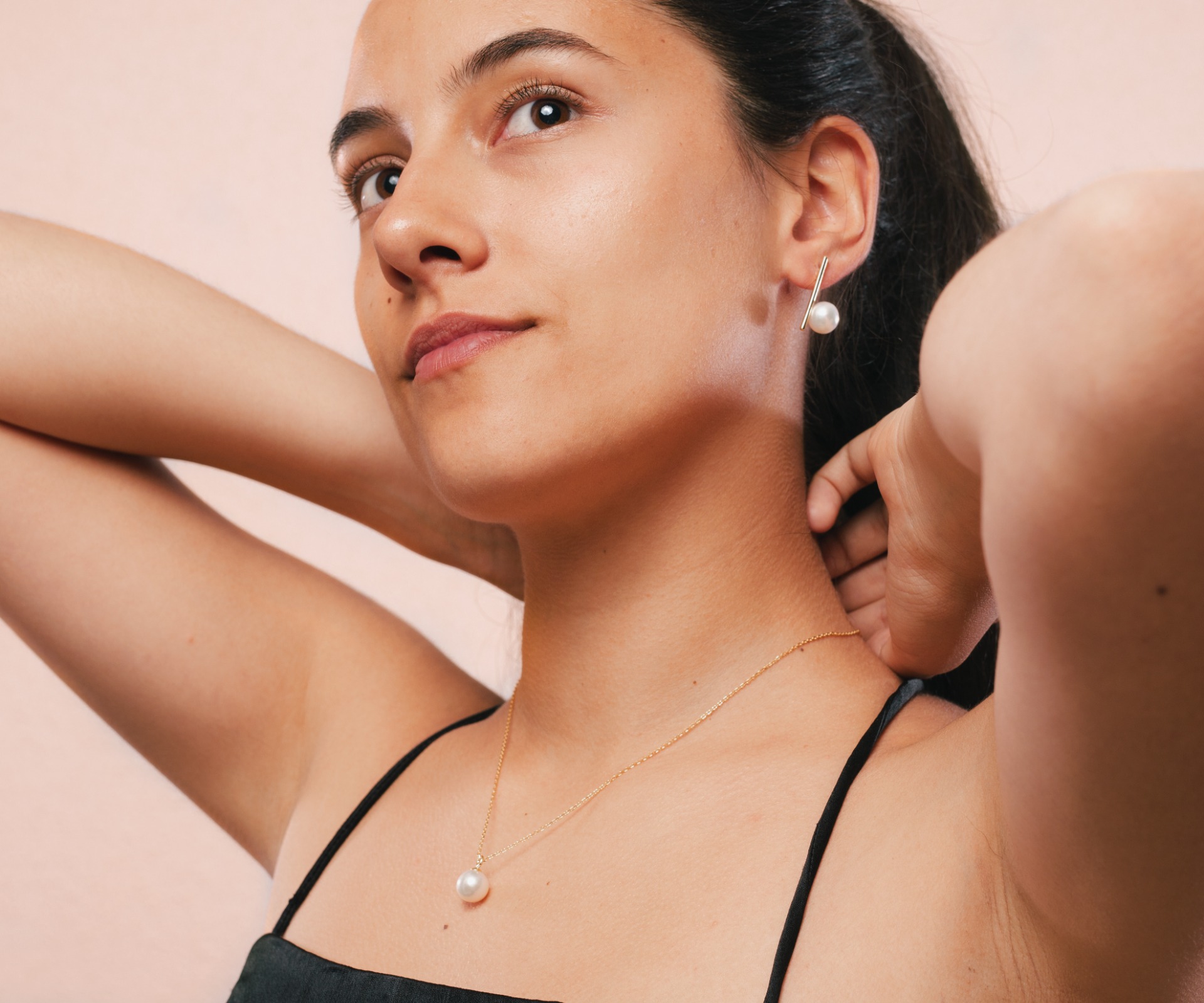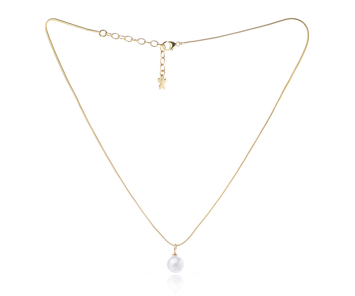 Como complemento perfecto a la cadena, hemos incluido un colgante de perla redonda cultivada. Esta perla, cultivada con esmero, irradia un brillo cautivador y una belleza natural. Su suave tono y su forma redonda añaden un toque de elegancia y delicadeza a este conjunto.