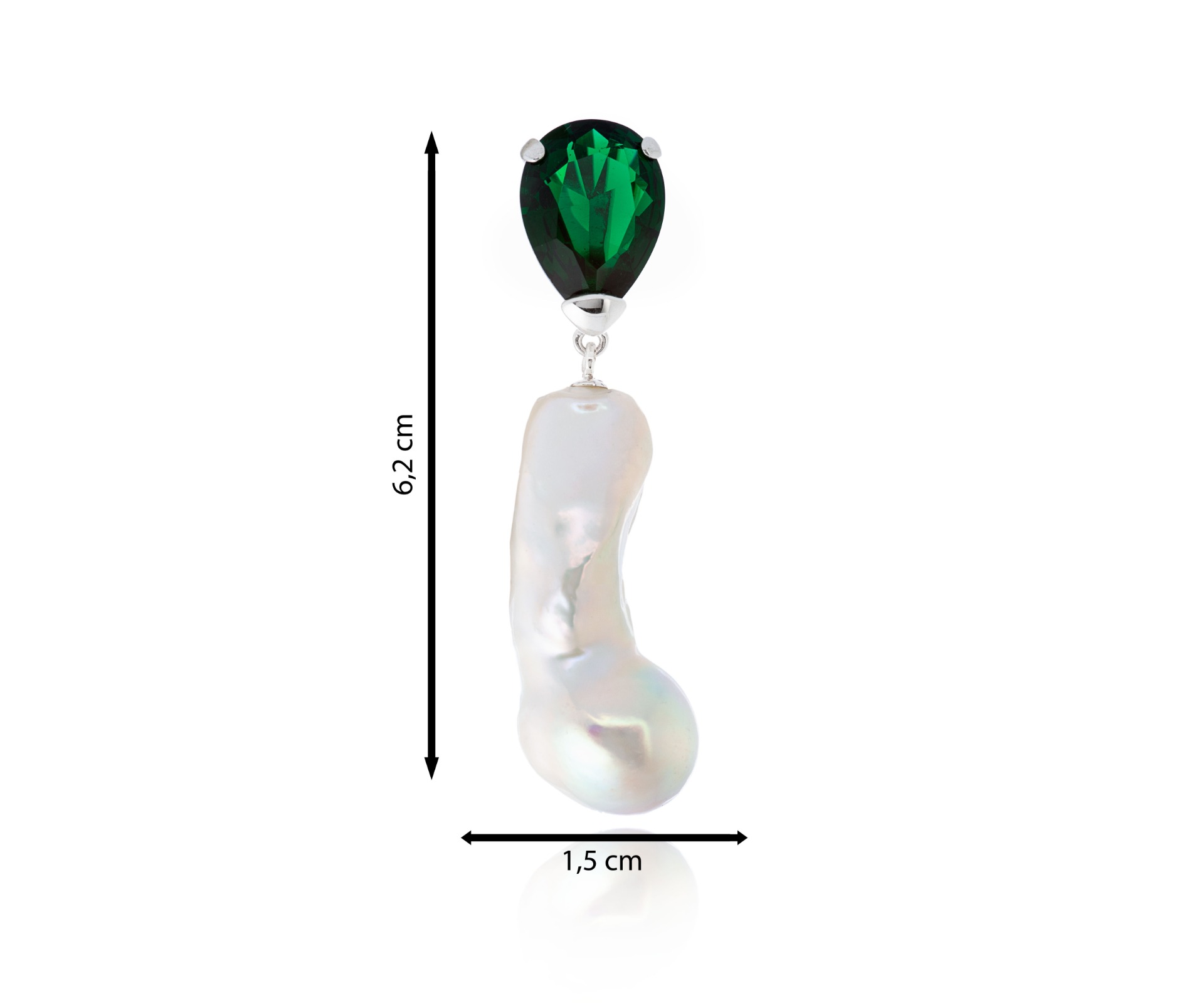 La combinación de la perla barroca y la circonita de color verde esmeralda es realmente deslumbrante, creando una pieza única y sofisticada que seguramente llamará la atención.