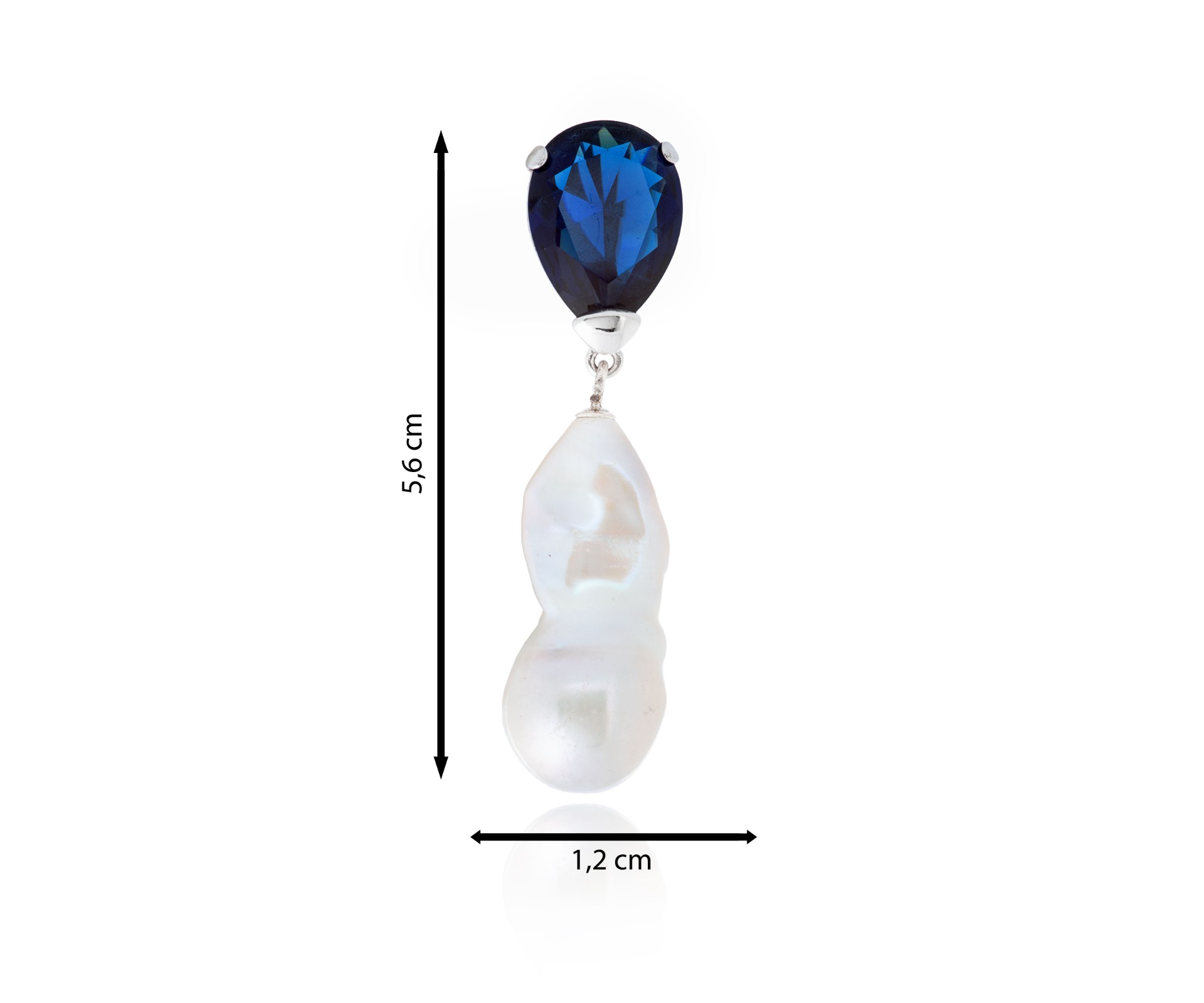 El contraste entre la perla barroca y la circonita de color azul marino crea una combinación visualmente impactante, haciendo de este colgante una pieza única y llamativa.