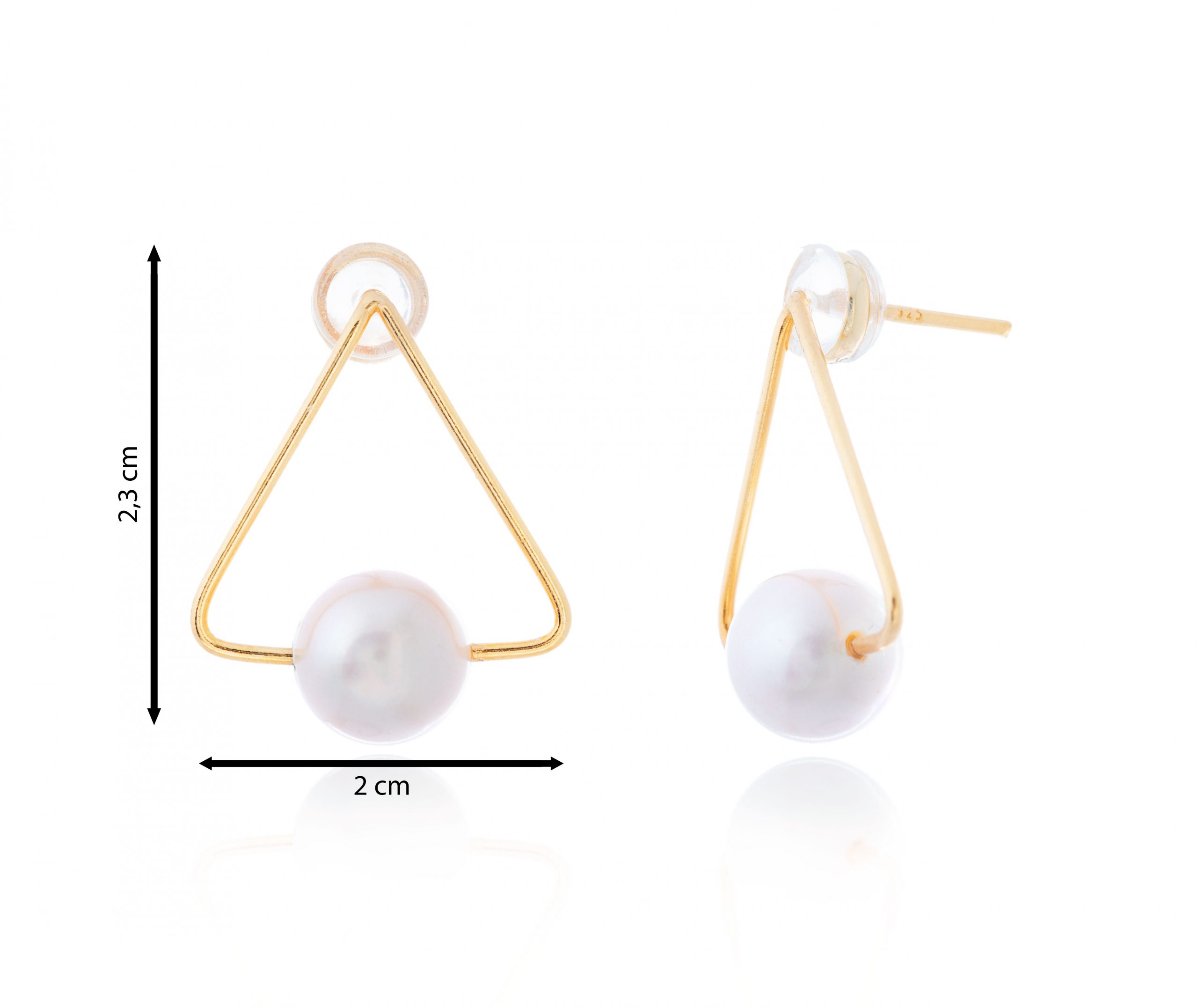 Triángulo dorado minimalista con perla cultivada suspendida. Un diseño moderno con un toque geométrico y luminoso.