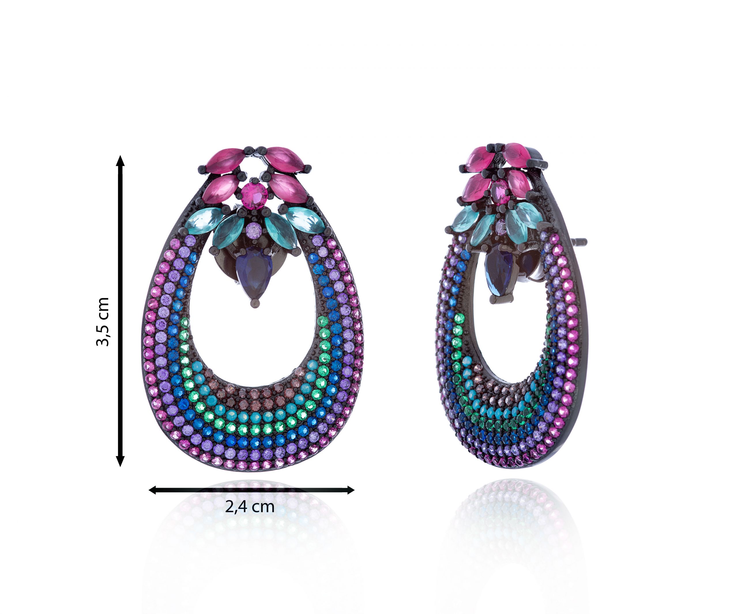 Pendientes multicolor con incrustaciones brillantes en forma de abanico. Una pieza vibrante y expresiva con acabado luminoso.