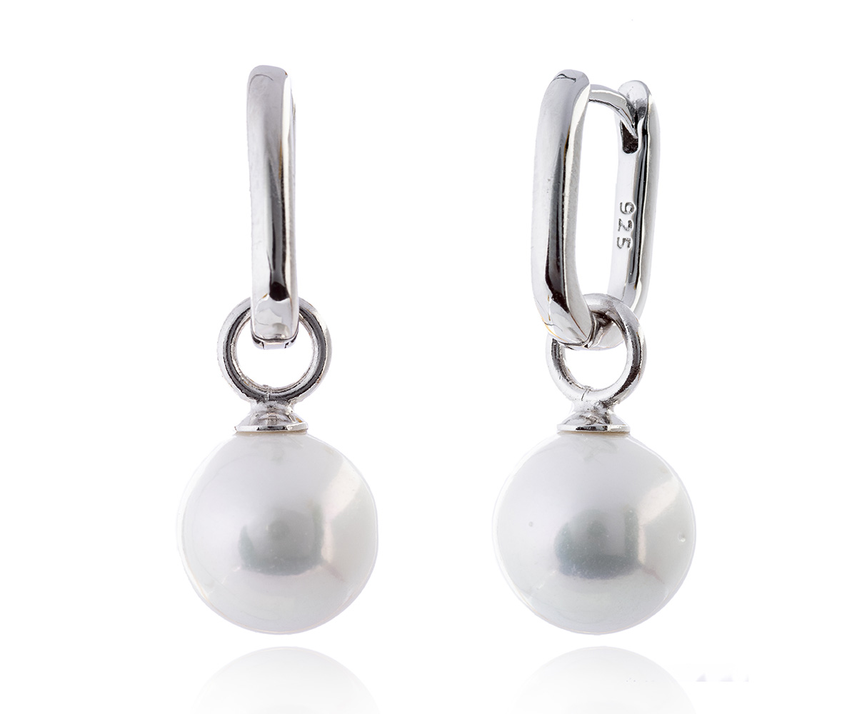 Aros de plata con perla cultivada suspendida. Un pendiente atemporal con un arco delicado y luminoso.