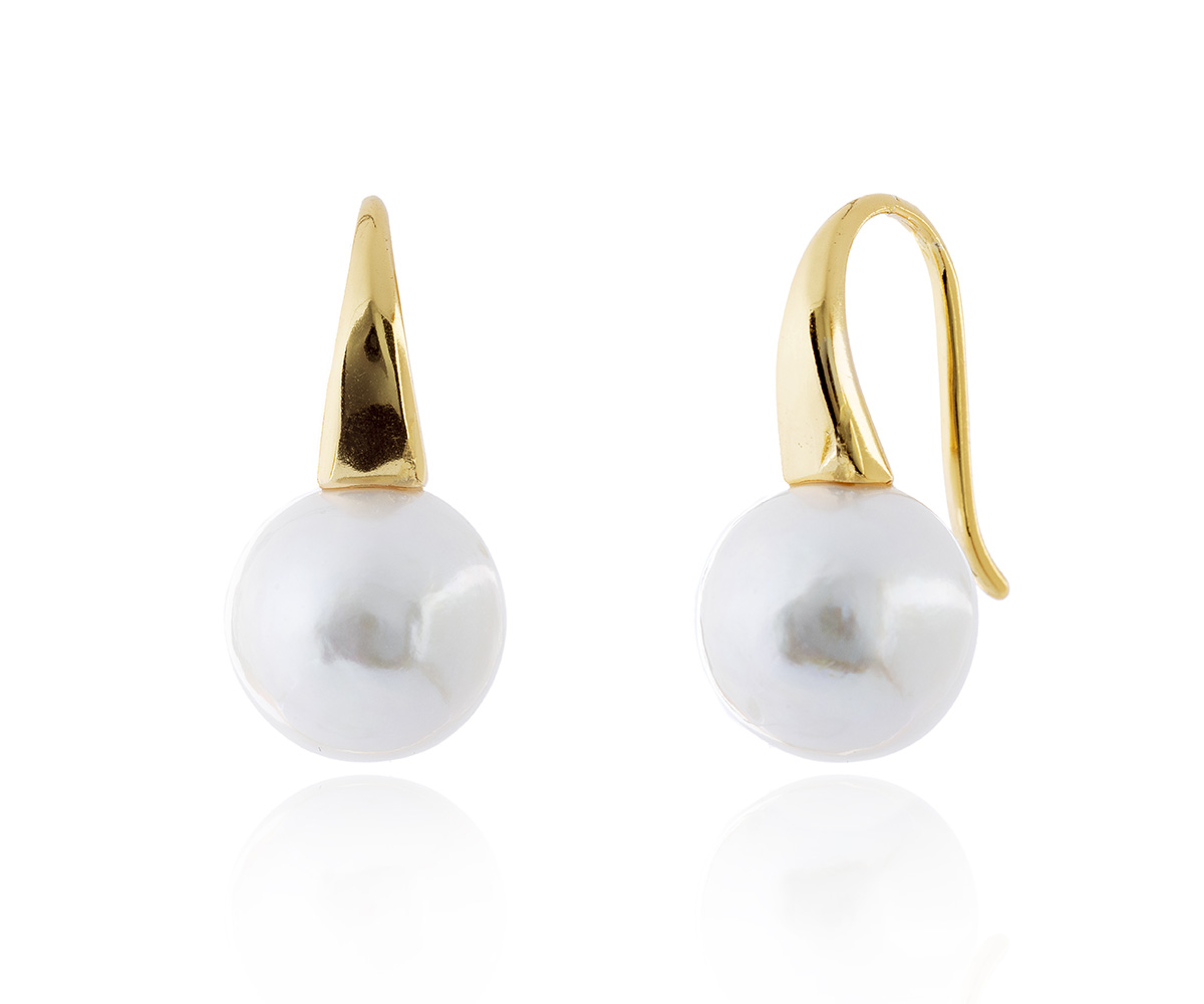 Gancho dorado estilizado con perla cultivada. Un diseño elegante y cálido con líneas minimalistas.
