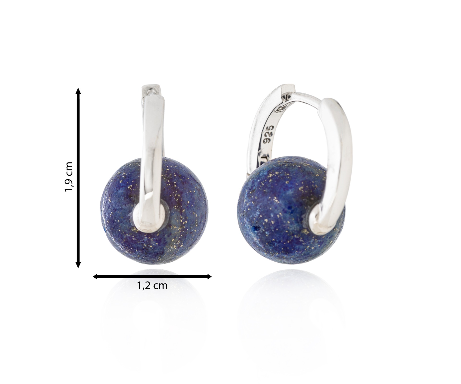 En el centro del aro, atraviesa de manera sutil una hermosa bola de lapislázuli, una piedra preciosa conocida por su intenso color azul y su belleza única. Esta combinación de plata y lapislázuli crea un contraste visual llamativo y agrega un toque de elegancia a tus outfits.
