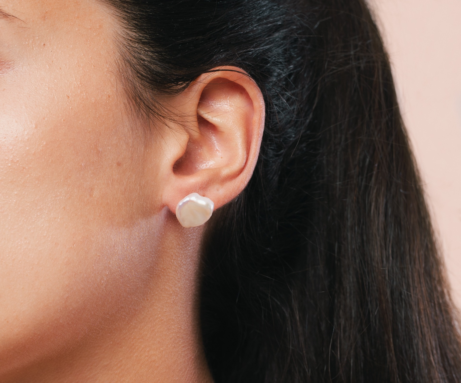 Te presentamos nuestros elegantes pendientes en plata de ley con cierre de tuerca y una hermosa perla Keishi. Estos pendientes son el accesorio perfecto para añadir un toque de sofisticación y estilo a cualquier conjunto.
