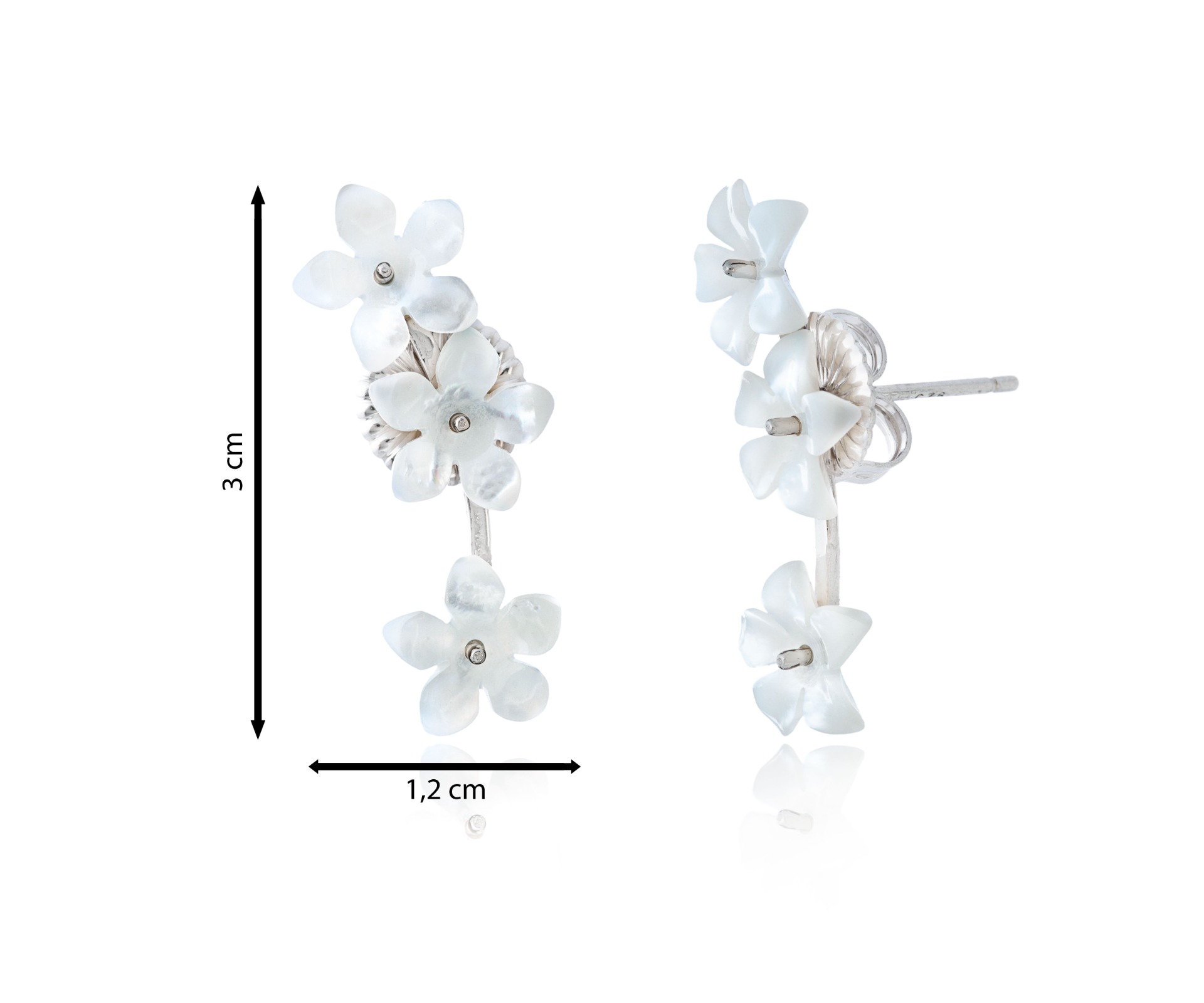 Cada flor en estos pendientes ha sido cuidadosamente elaborada para capturar la esencia de la belleza natural. La plata de ley realza la elegancia de cada flor, añadiendo un brillo sutil y atemporal. El diseño lineal de las tres flores en línea vertical crea una apariencia moderna y elegante que se adapta a cualquier ocasión.