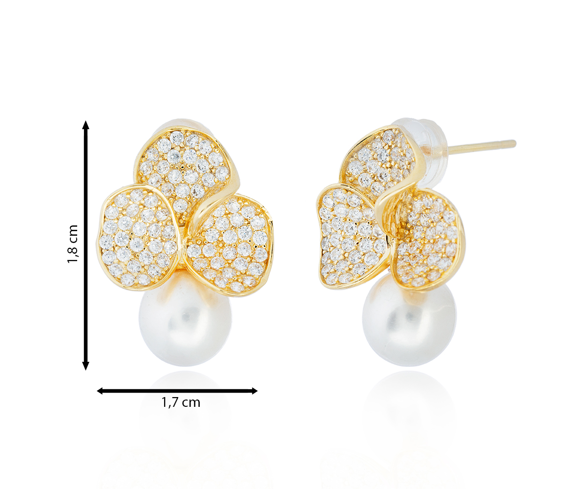 Disfruta del diseño exquisito y la belleza atemporal de nuestro pendiente de plata de ley con baño de oro. Con su simulación de hojas de trébol, incrustaciones de circonita blanca y la presencia de una maravillosa perla cultivada, este pendiente te permitirá lucir sofisticada y deslumbrante. Marca la diferencia y complementa tu estilo con esta joya única.