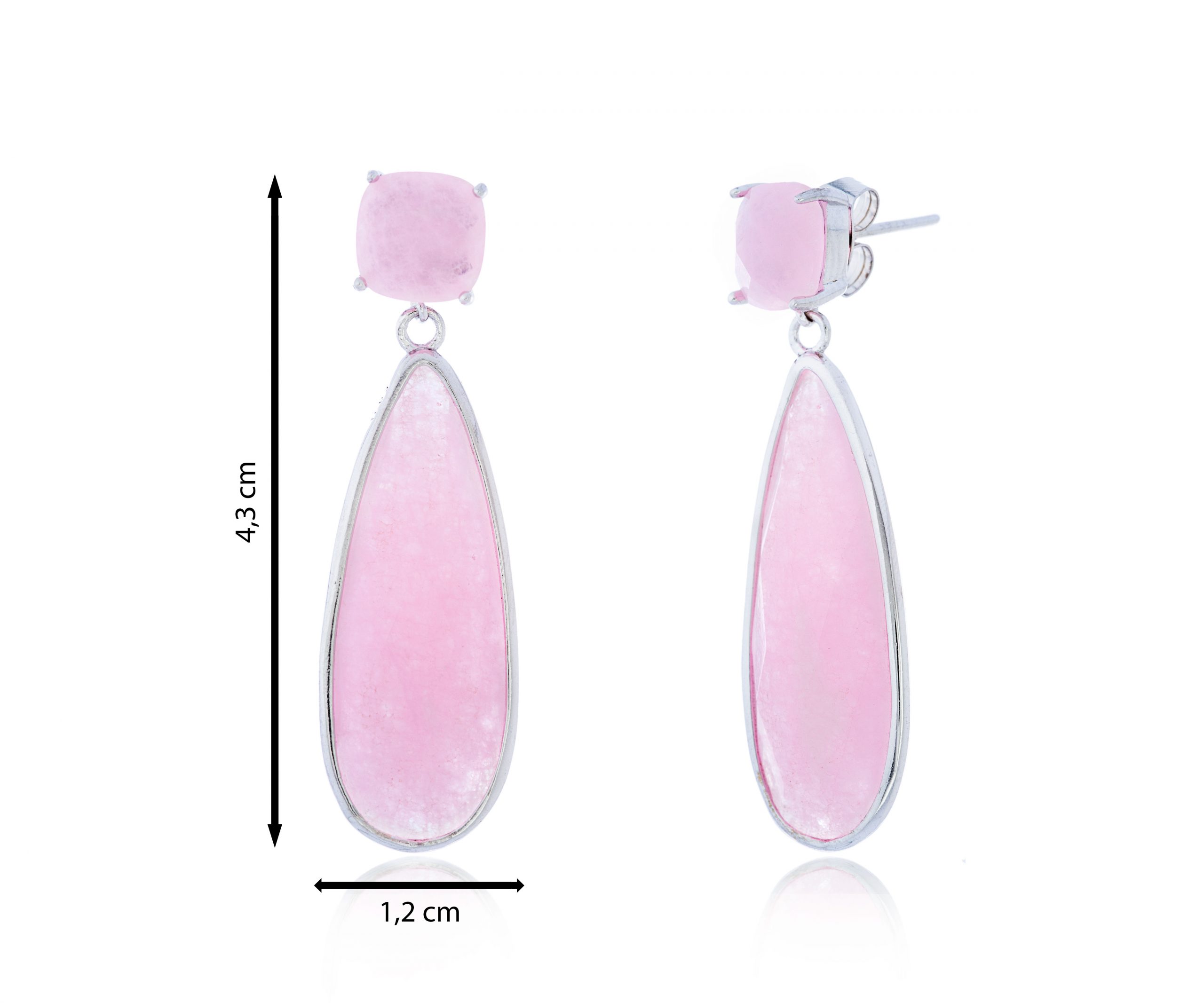 Colgante lágrima en tono rosa suave con montura plateada. Un pendiente femenino y delicado con un toque romántico.
